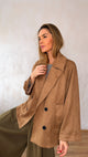 Bőrhatású anyagból készült pufi hosszú kabát.