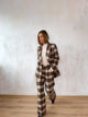 Vastag, bolyhos belsejű pulóver masnis vállal.