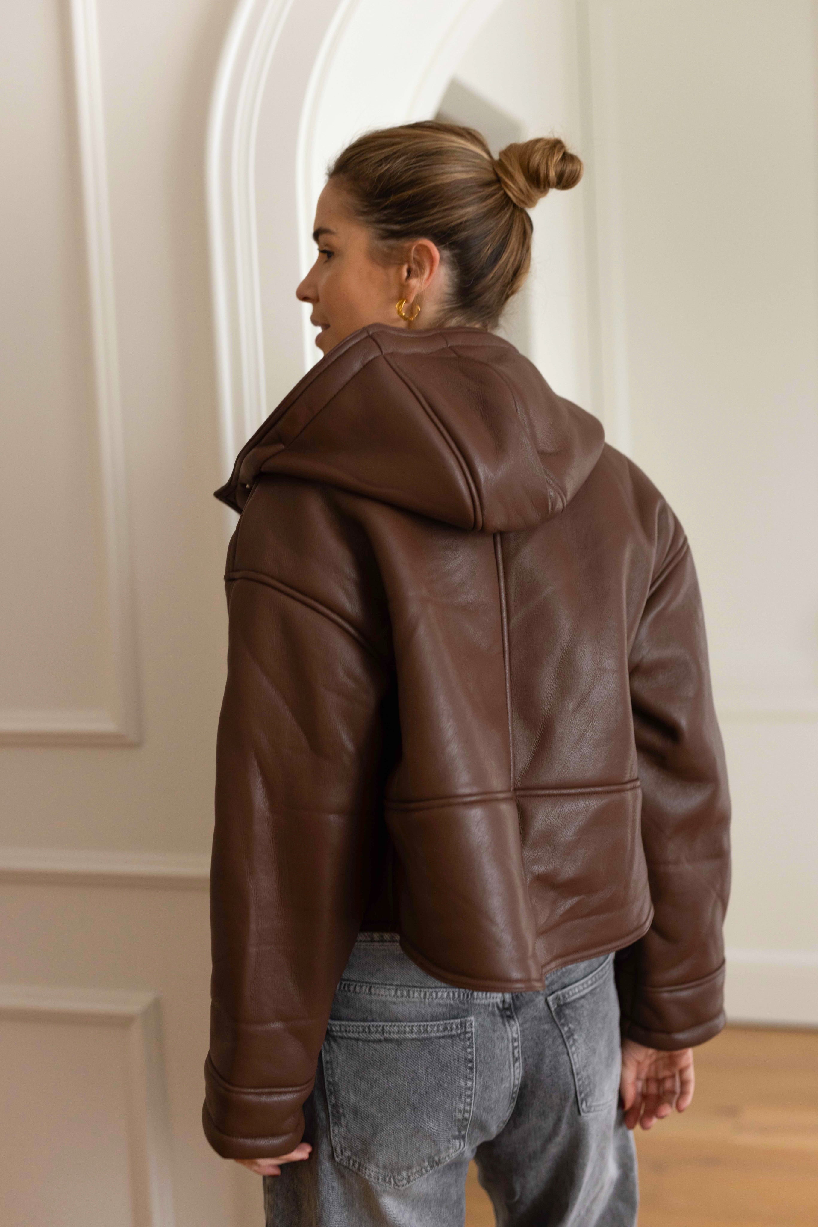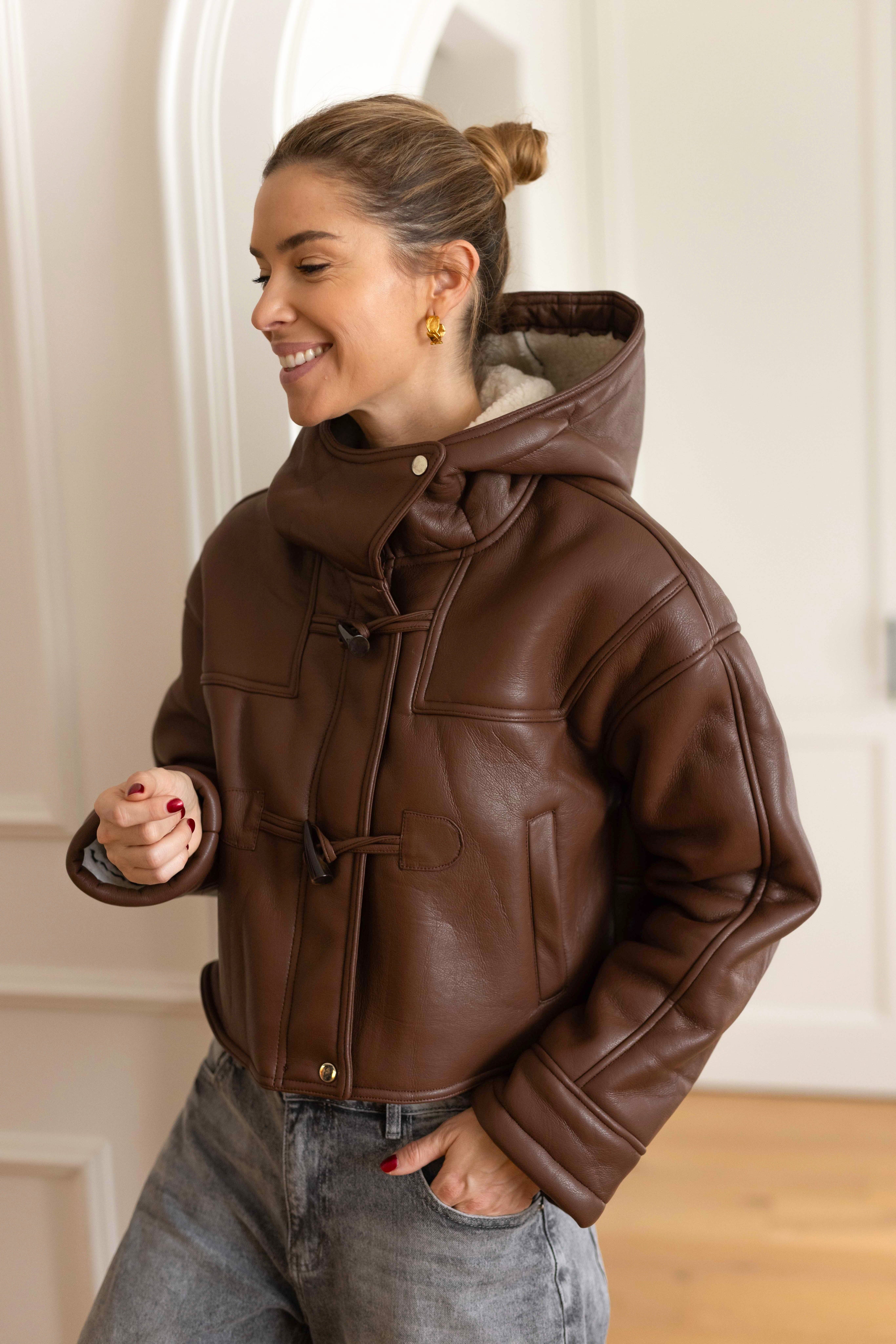 Bélelt, vastagabb anyagból készült bőrhatású kabát.