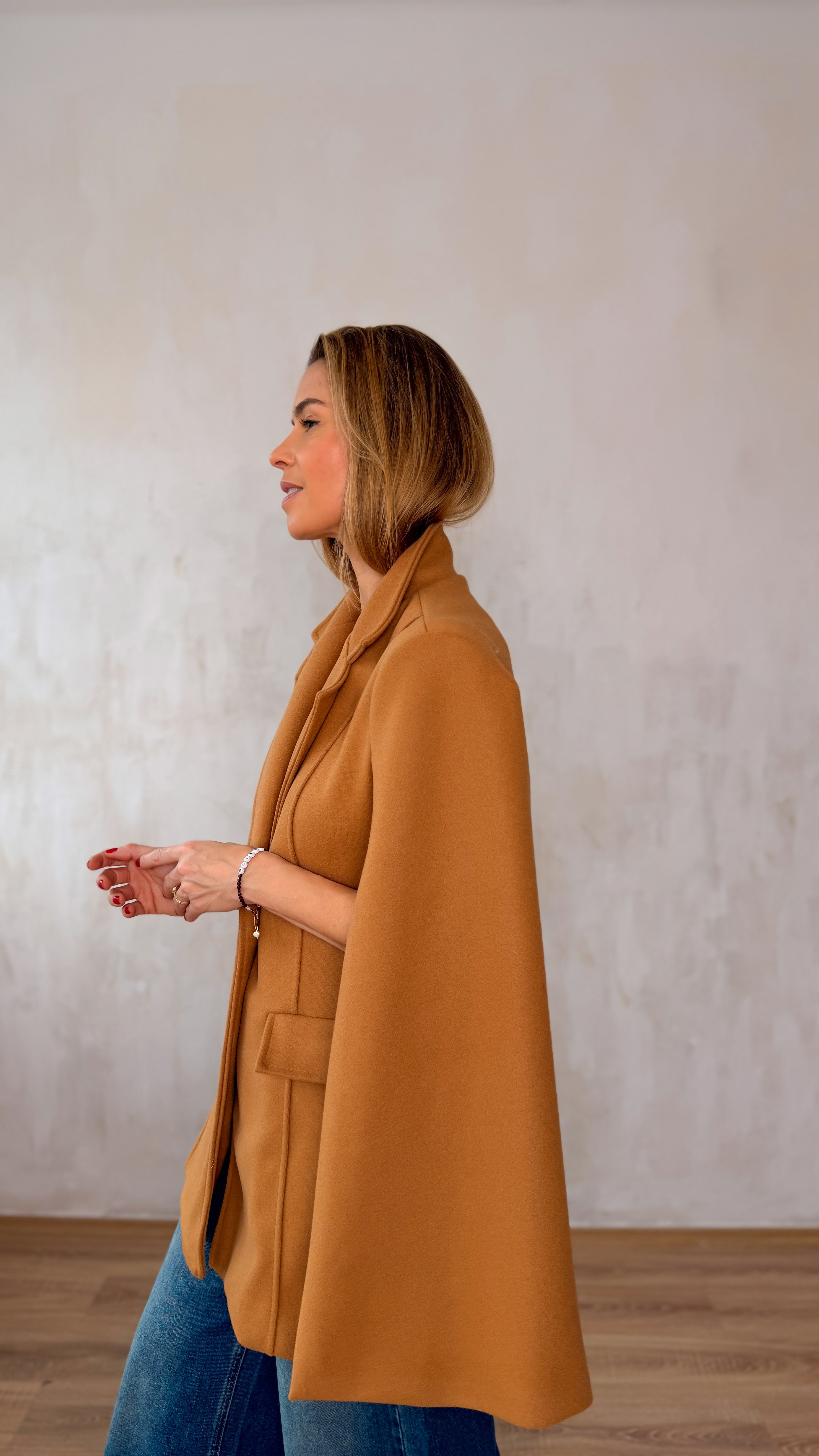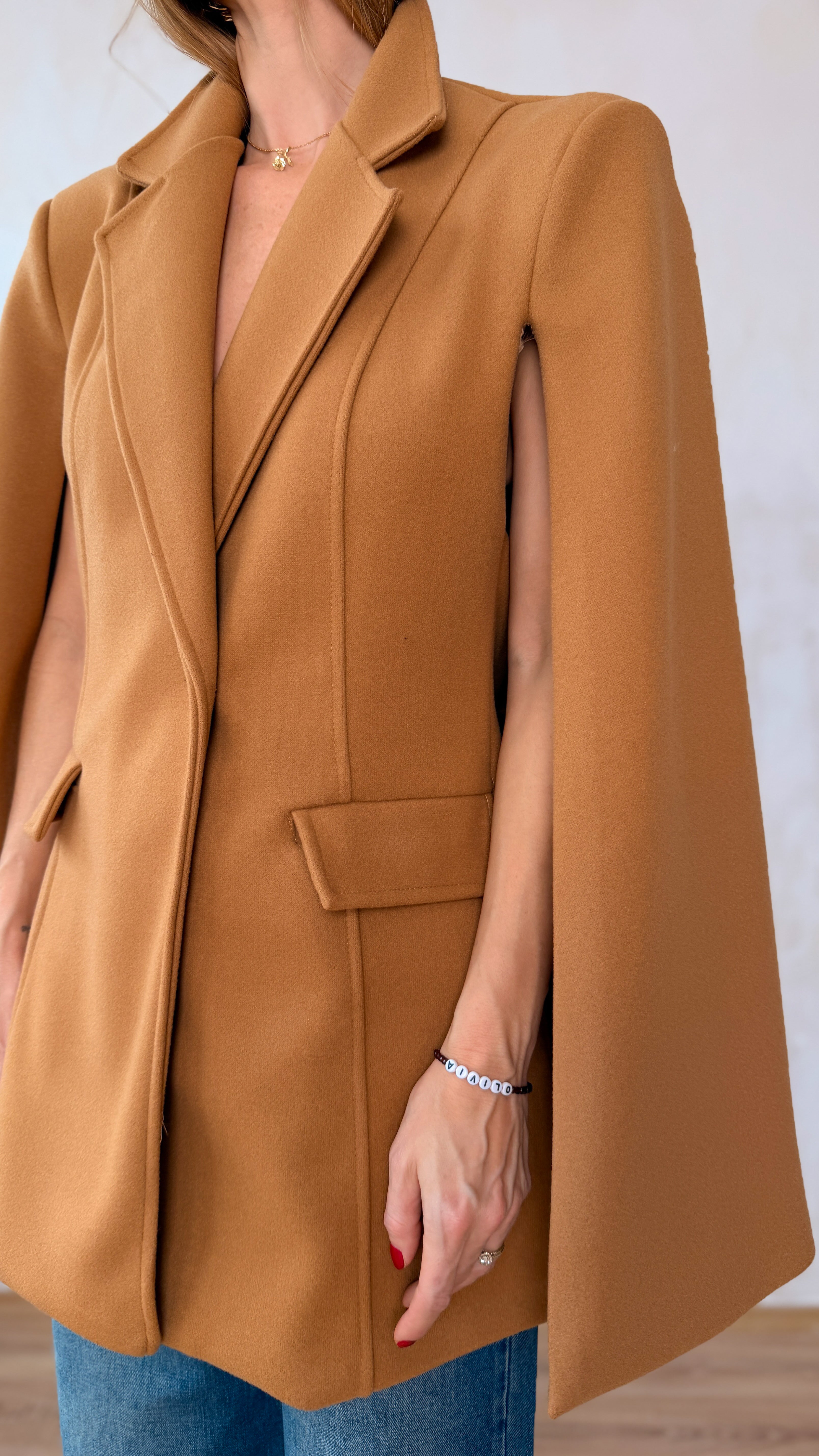 Különleges karkivágású, vastagabb anyagból készült szövetkabát.