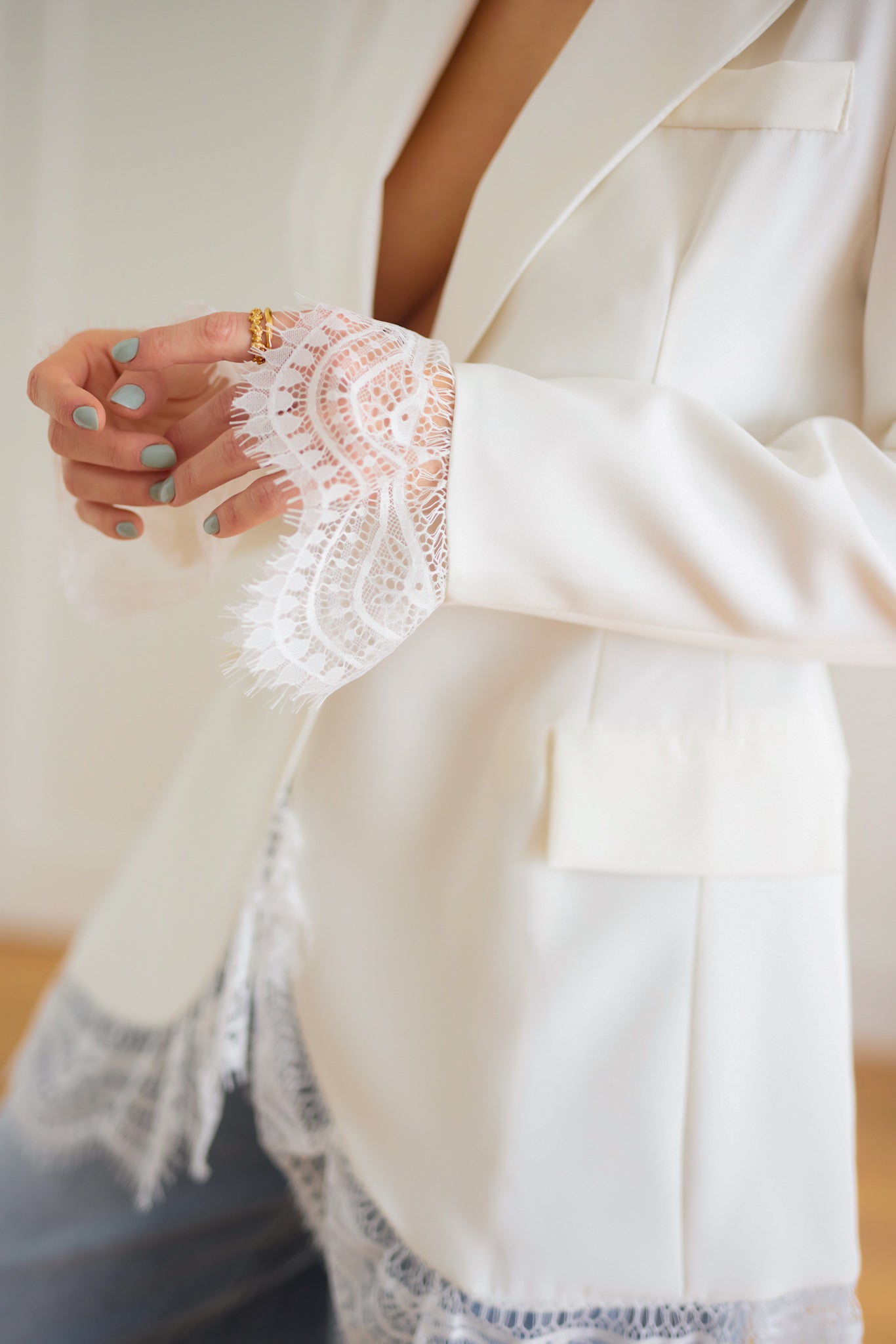 Elegáns, szűkített fazonú, csipkeszegős blézer.