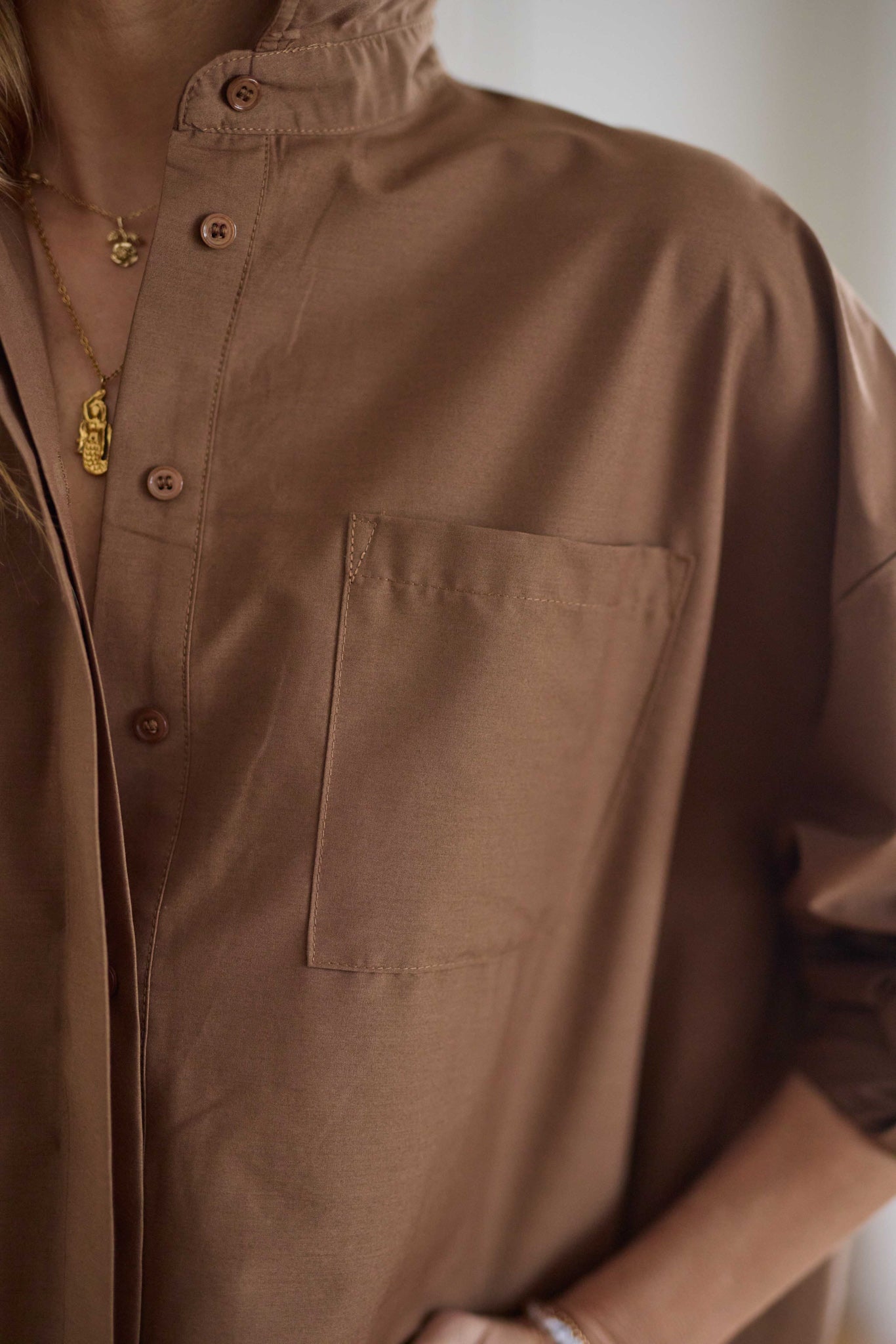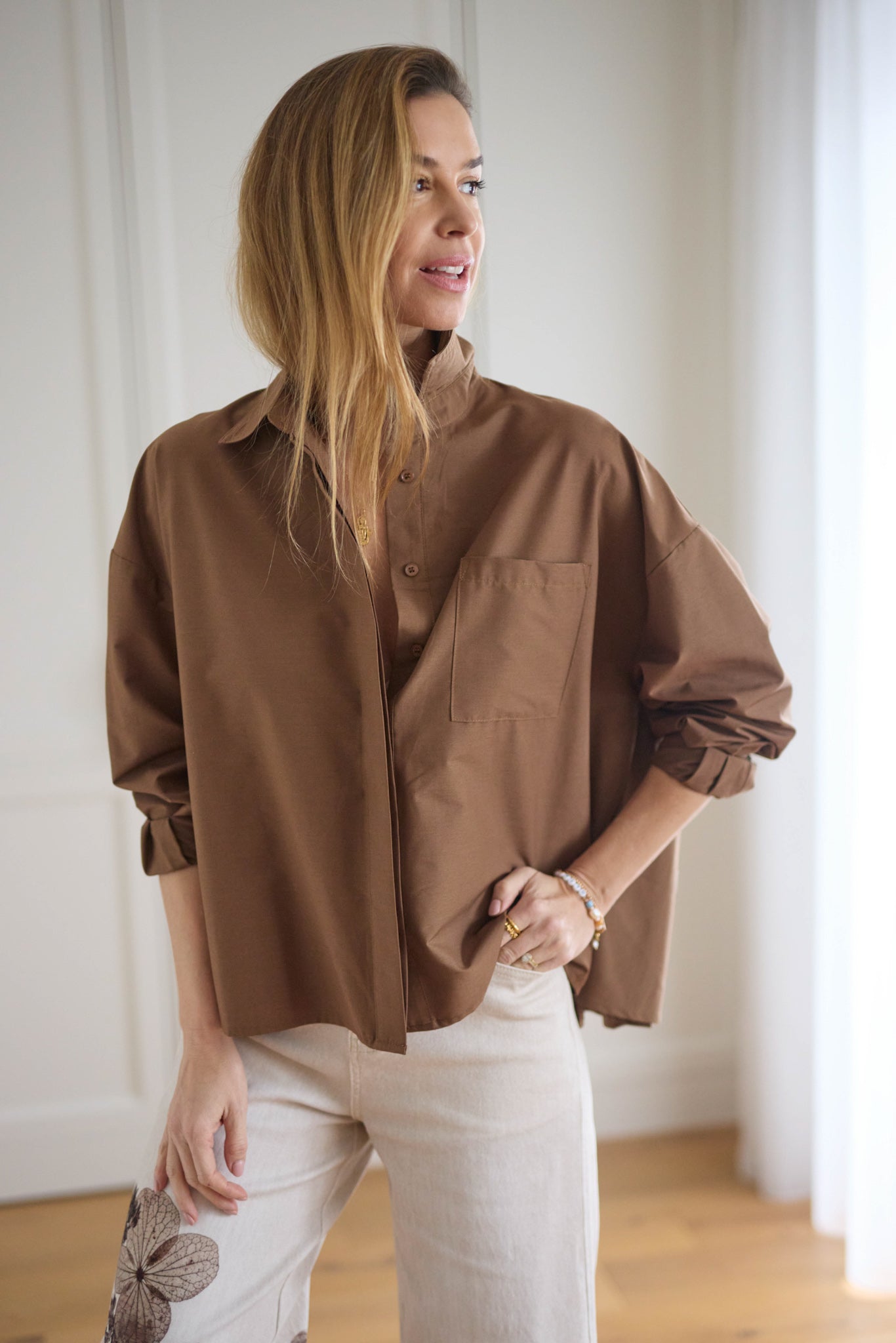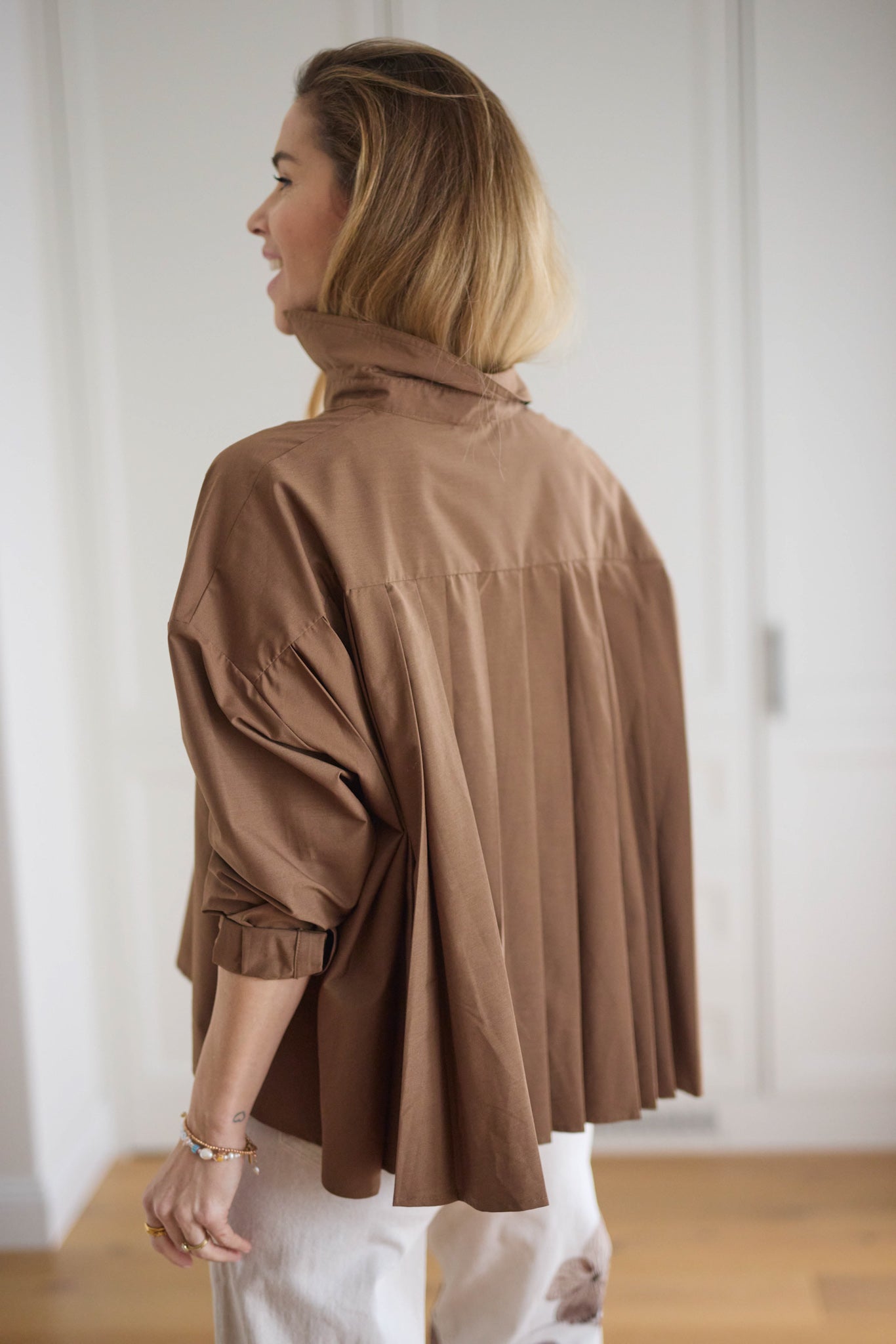 Hátán hajtásokkal díszített, lenge, bő fazonú ing.