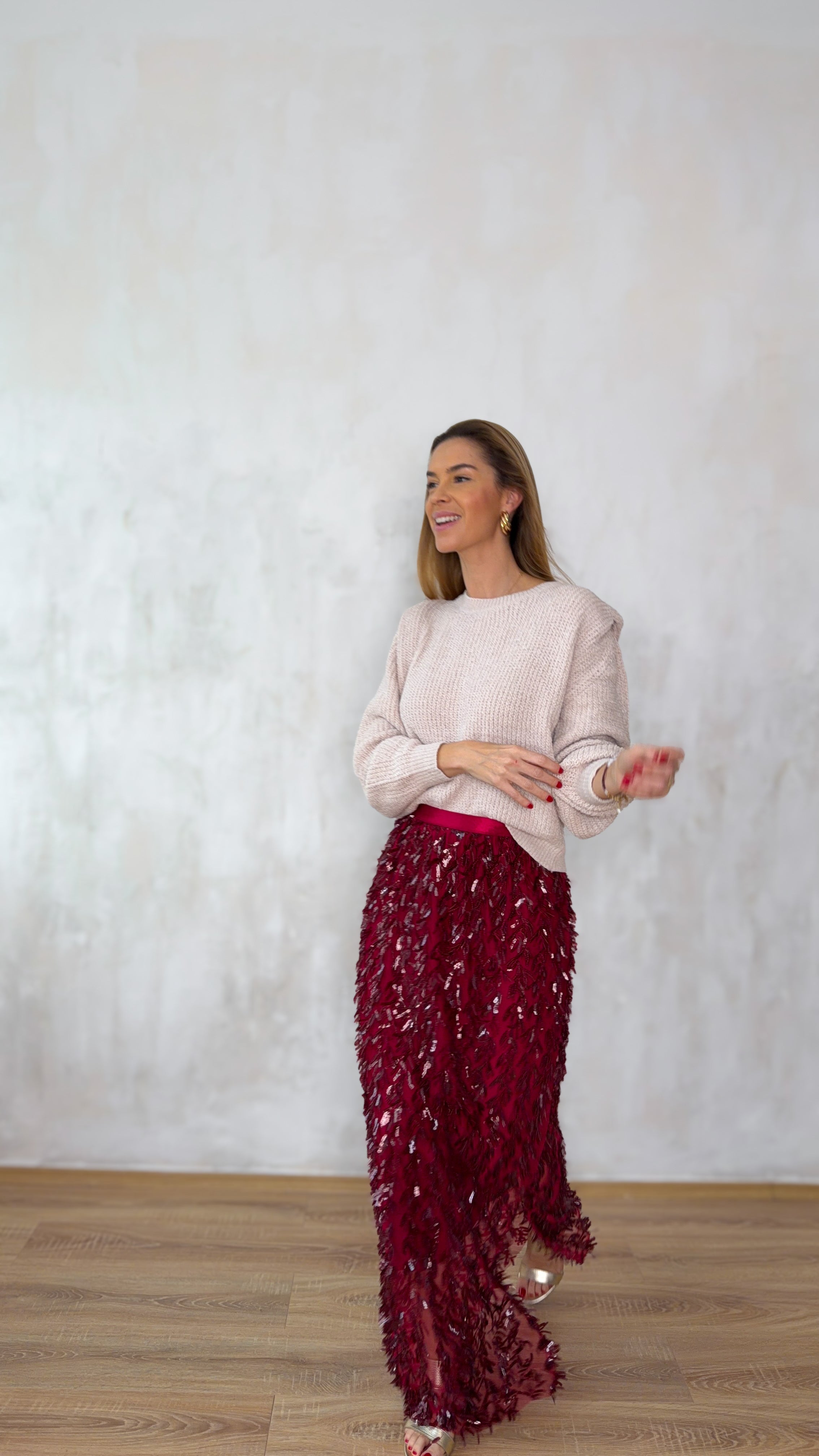 Flitteres rojtokkal díszített ceruzaszoknya.
