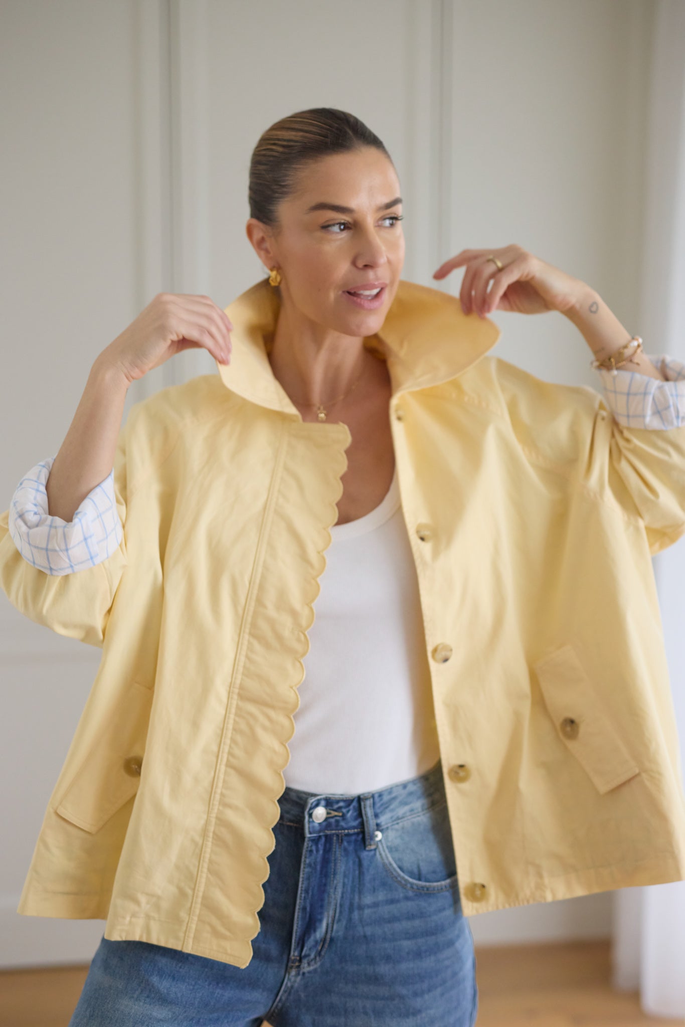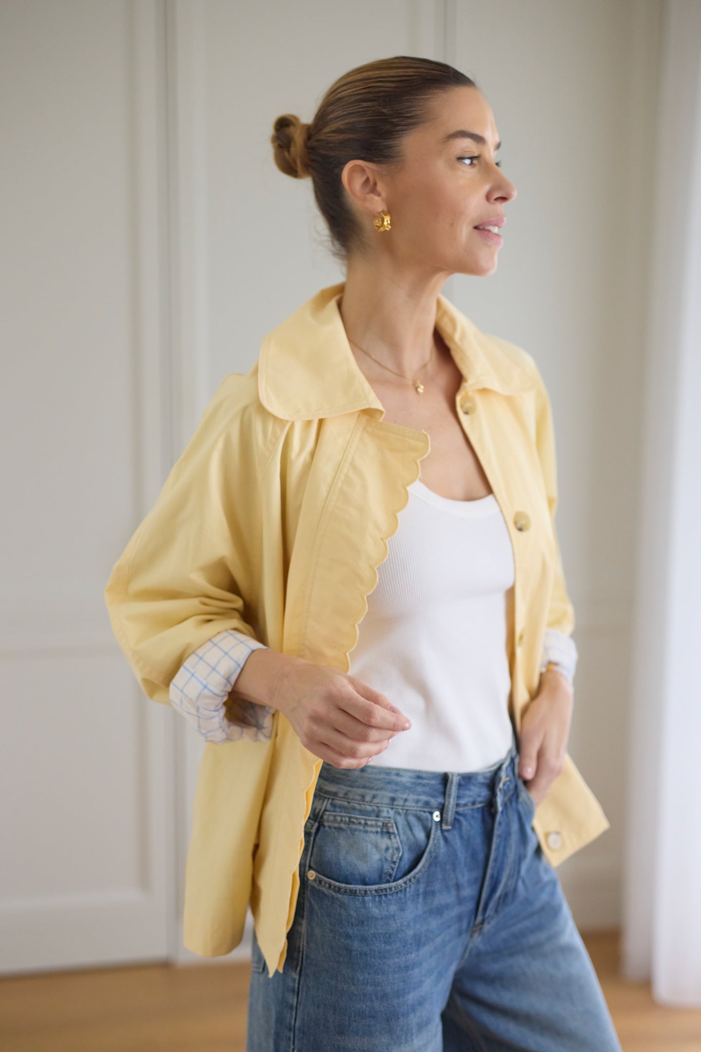 Bő fazonú, vékonyabb anyagból készült, fodorszegős kabát.