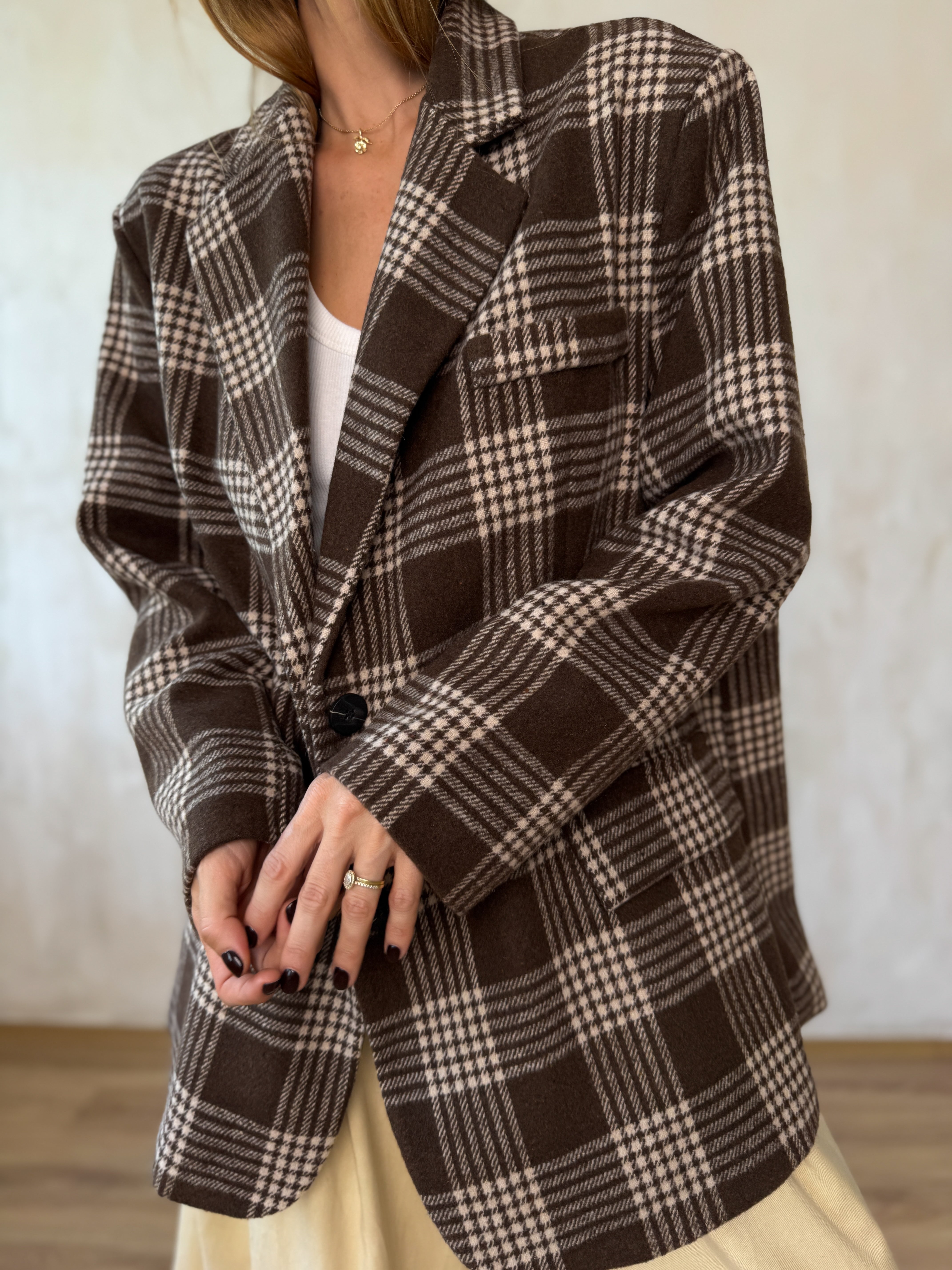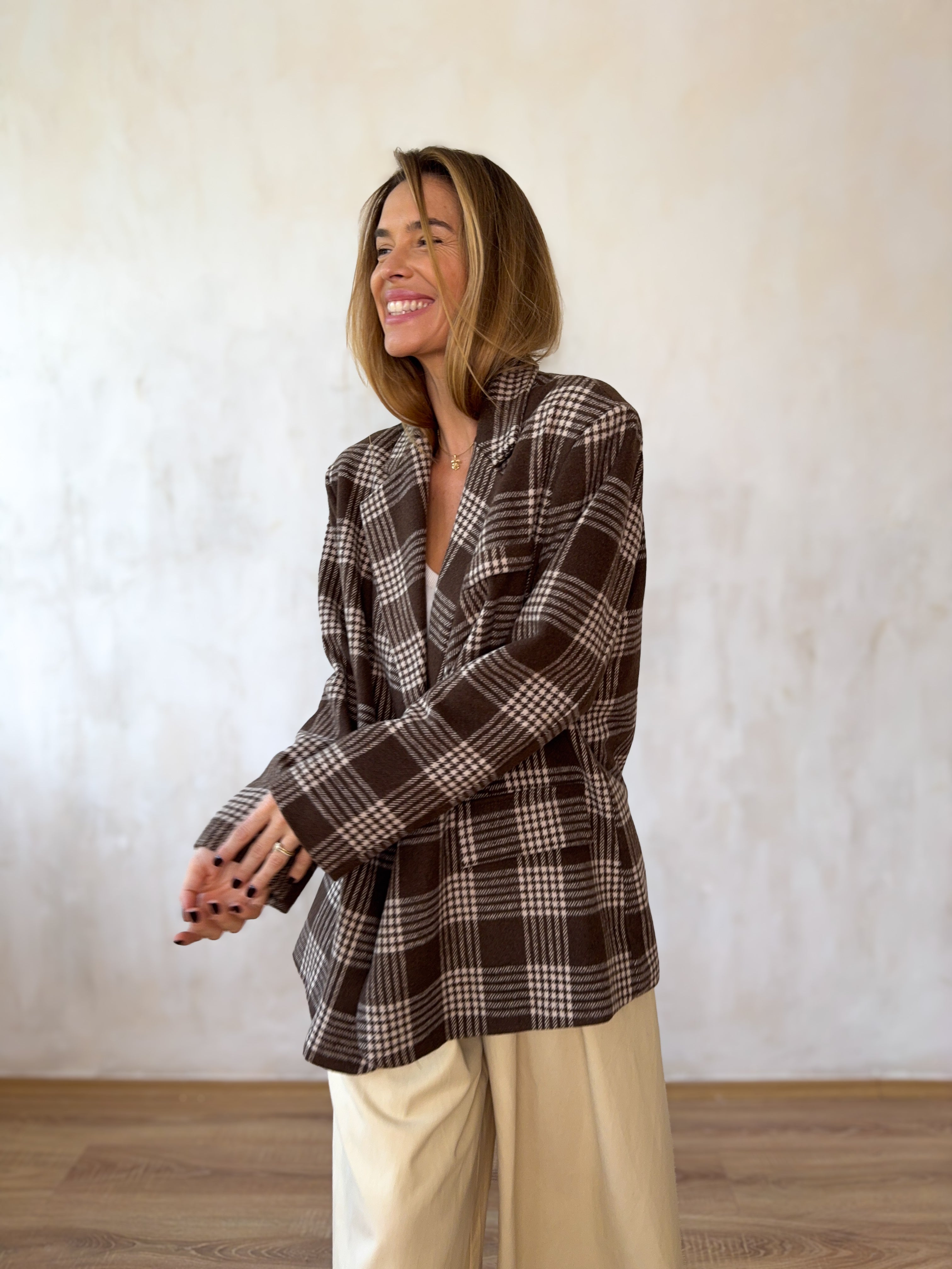 Kockás, oversize szövetkabát.