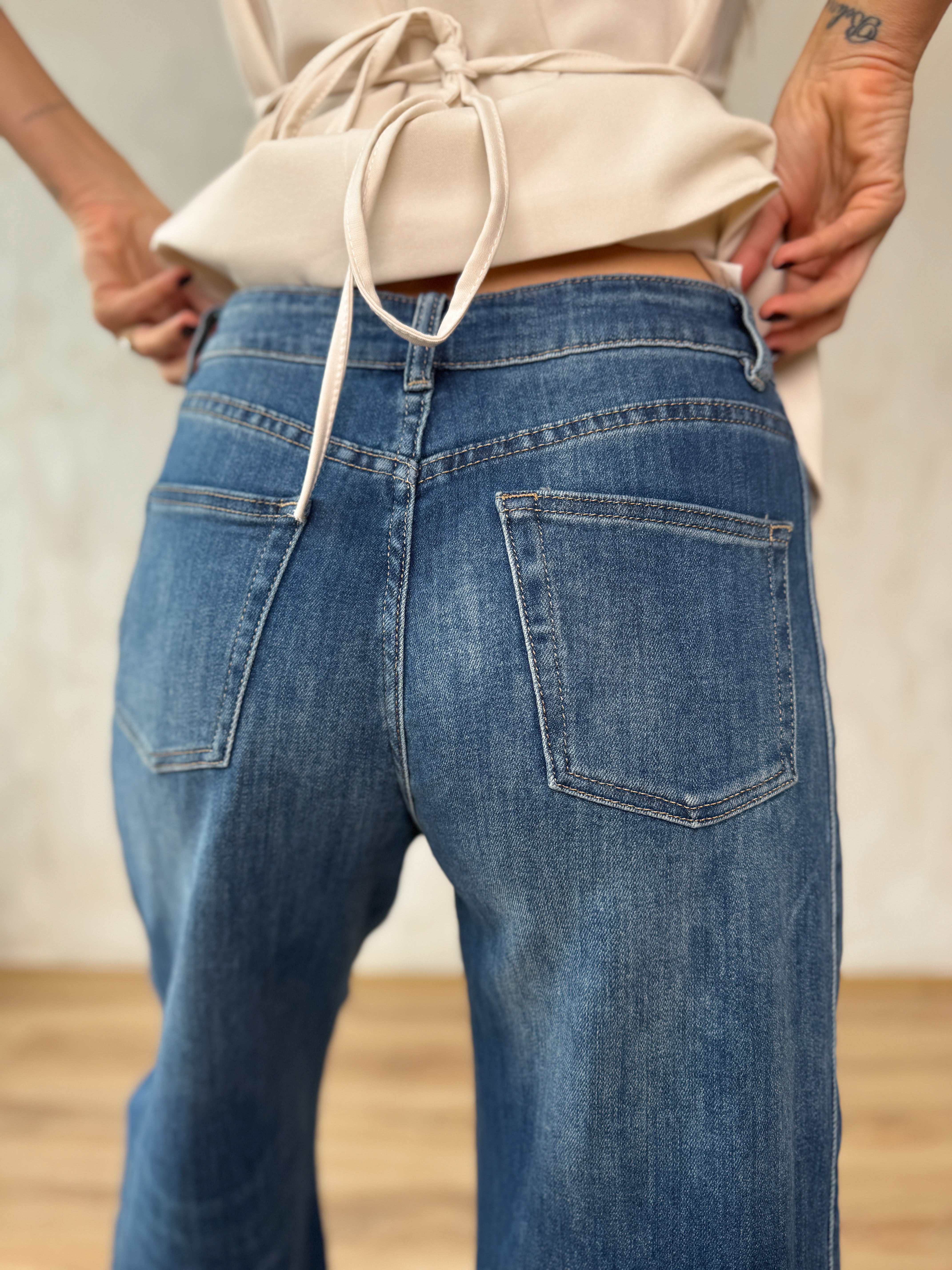 Rugalmas anyagból készült farmer.