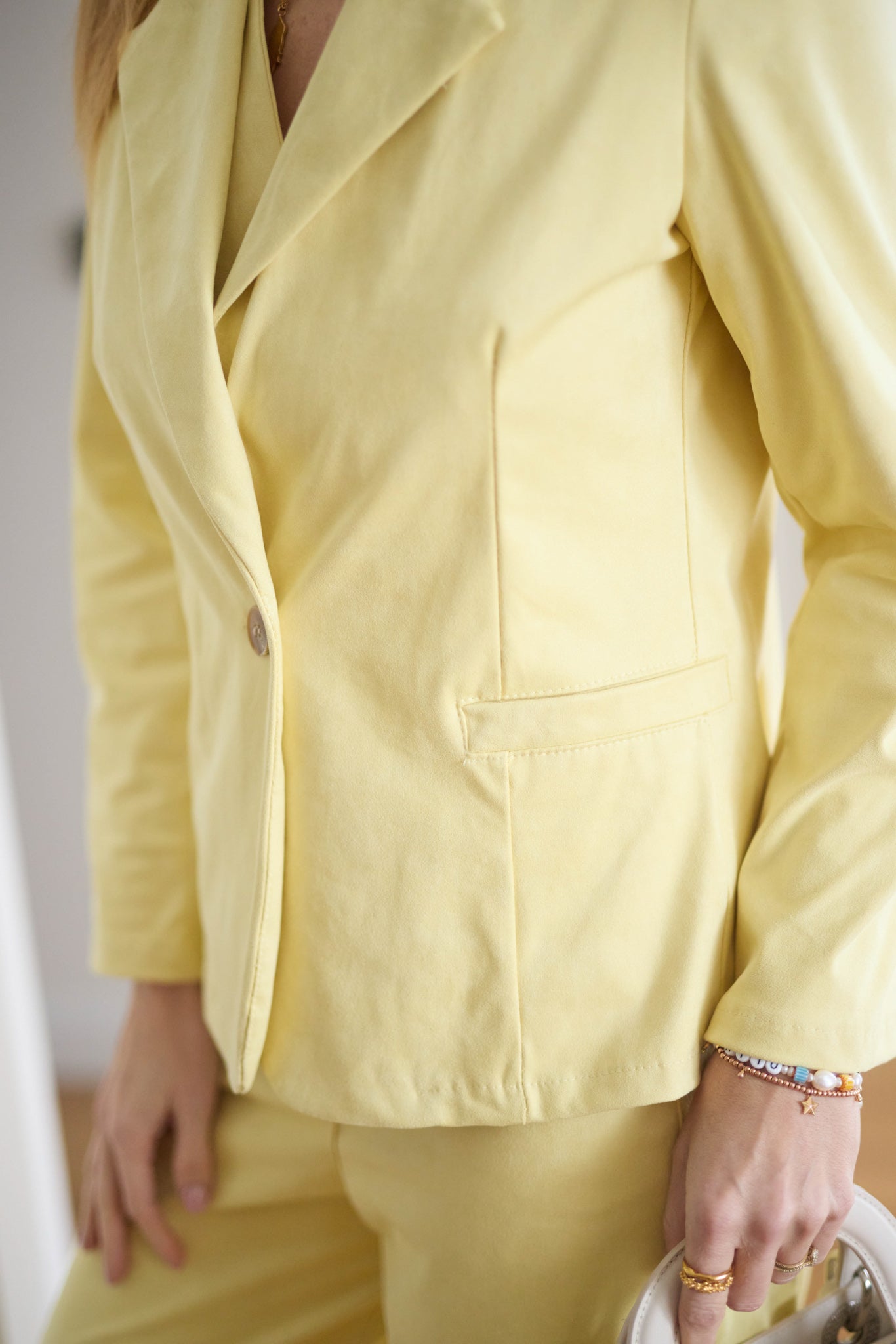 Prémium, velúr hatású anyagból készült, szűkített fazonú blézer.